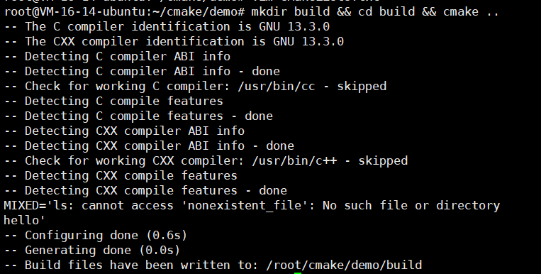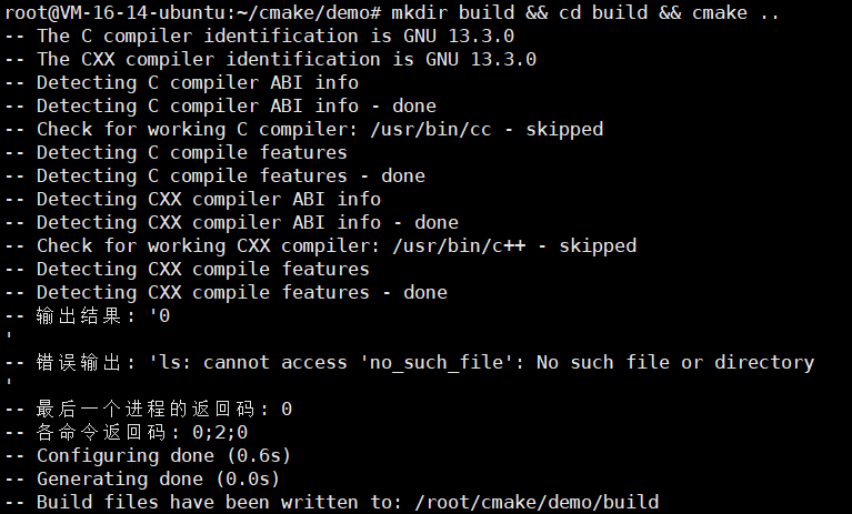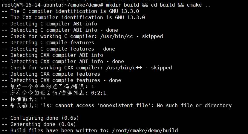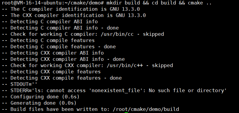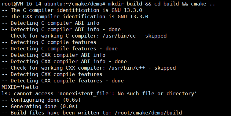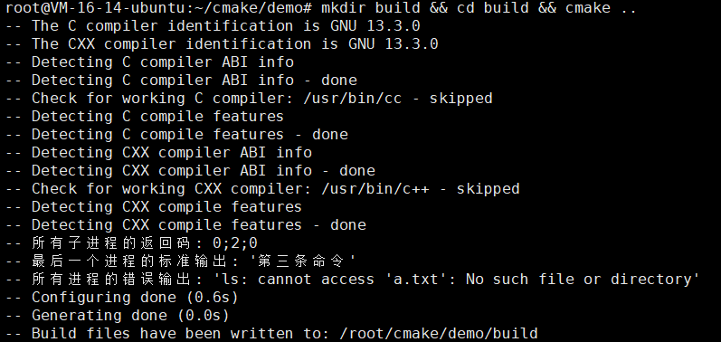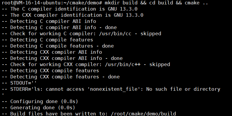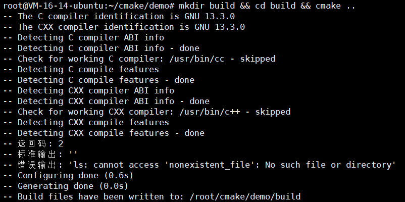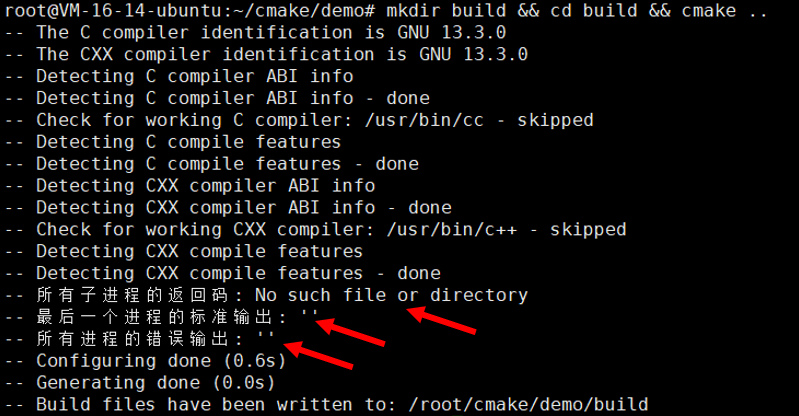 是在 配置阶段 把子进程的输出直接打印到 CMake 自己的终端里(就像 message(STATUS ...)