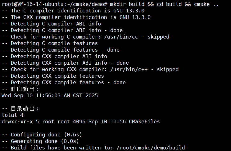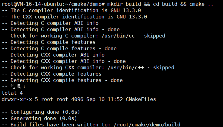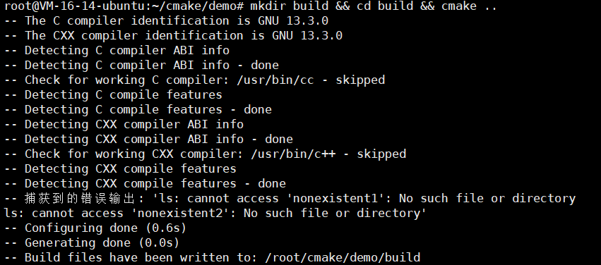 # 在 build 目录里创建两个子目录,并写入不同的文件