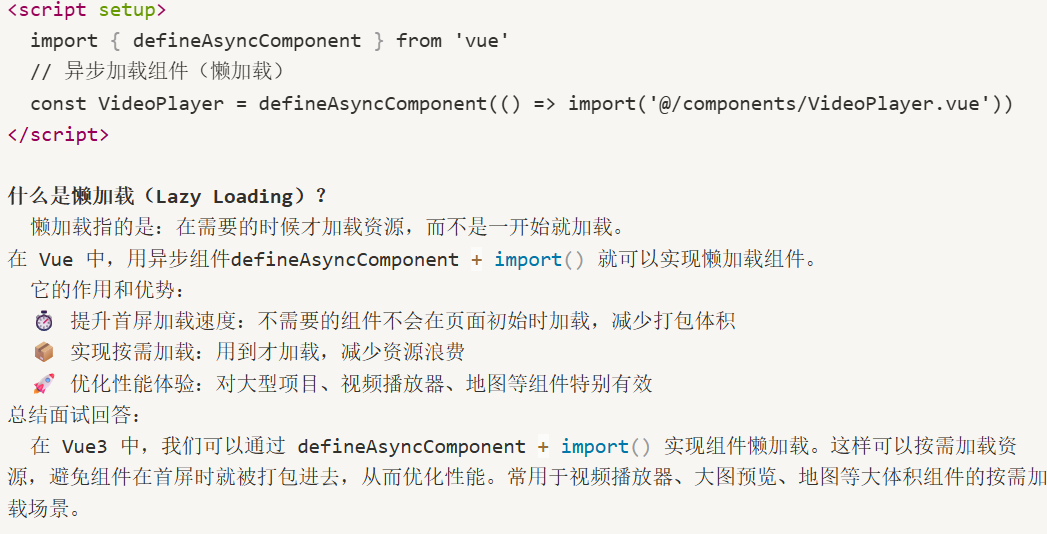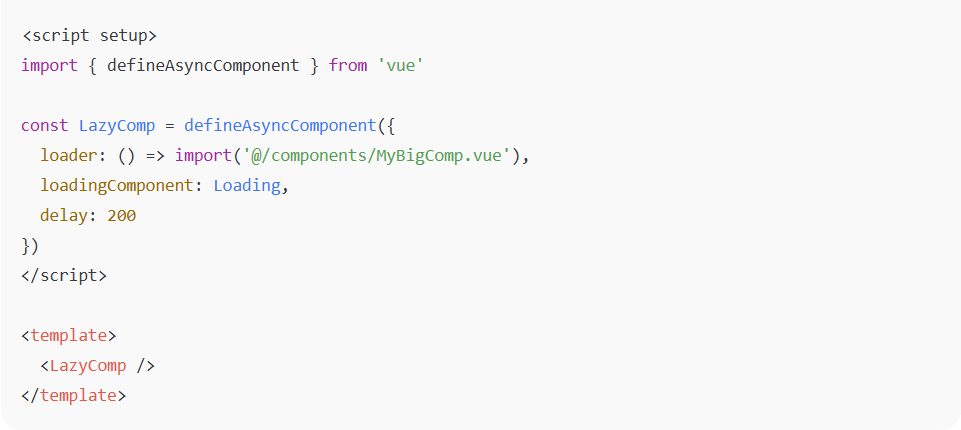 是懒加载 ✅ 用于 Vue Router 配置 defineAsyncComponent