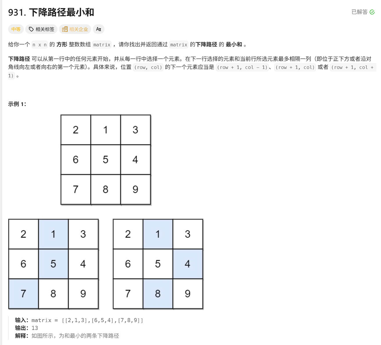 https://leetcode.cn/problems/minimum-falling-path-sum/