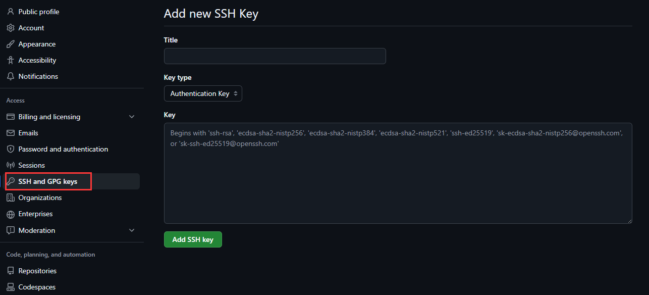 名字随便填,key 就是刚才复制的 ssh公匙。