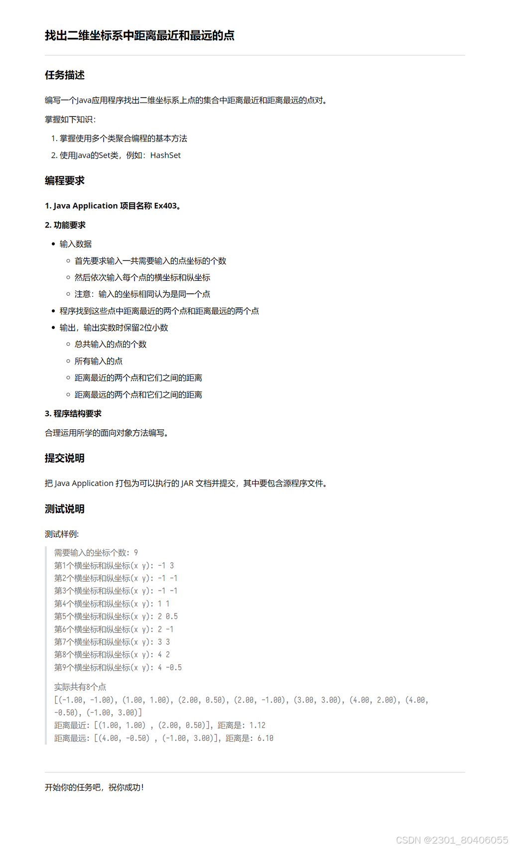 SCAU java—oop 实验:找二维坐标系中最近和最远的点并计算出最近和最远距离