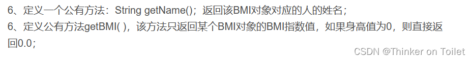 6、定义一个公有方法:String getName();返回该BMI对象对应的人的姓名;
