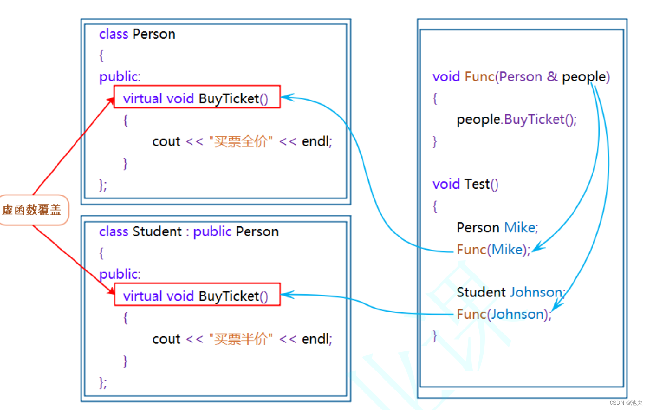 2. 被调用的函数必须是虚函数,且派生类必须对基类的虚函数进行重写。