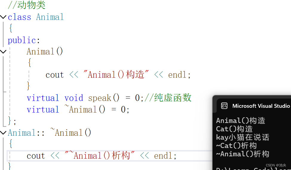 - 如果是纯虚析构,该类属于抽象类,无法实例化对象