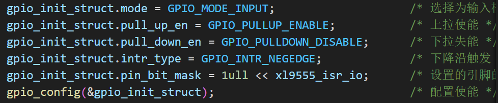 ②初始化对应的xl9555引脚,中断引脚和中断回调函数不需要