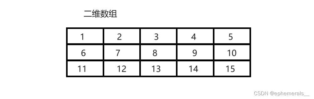 这说明其实在内存当中,二维数组并非是以“行”“列”的形式排列,只是我们使用的时候将其想象为一个有行数和列数的矩阵。拿一个三行五列的二维数组为例:
