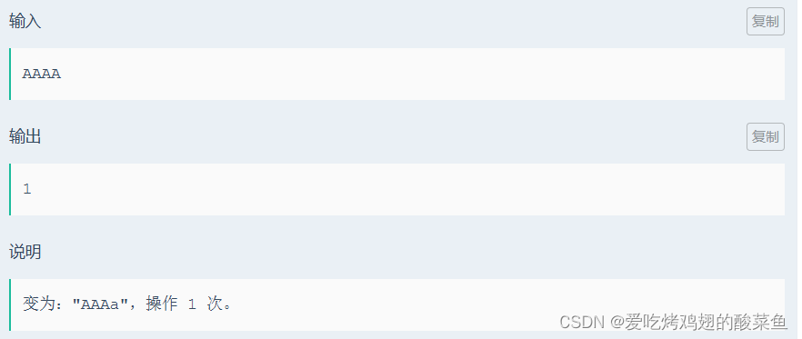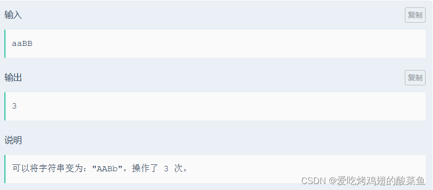 根据题意,任何一个位置都可以作为那一个“分界点”,即前面小写字母(包括本分界点)都变成大写字母,后面的大写字母(不包括本分界点)都变成小写字母。因此根据这个逻辑,我们可以将每一个字母都作为“分界点”并利用循环分别计算前后大小写字母个数。