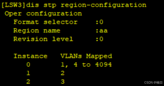 [LSW4-mst-region]instance 2 vlan 3