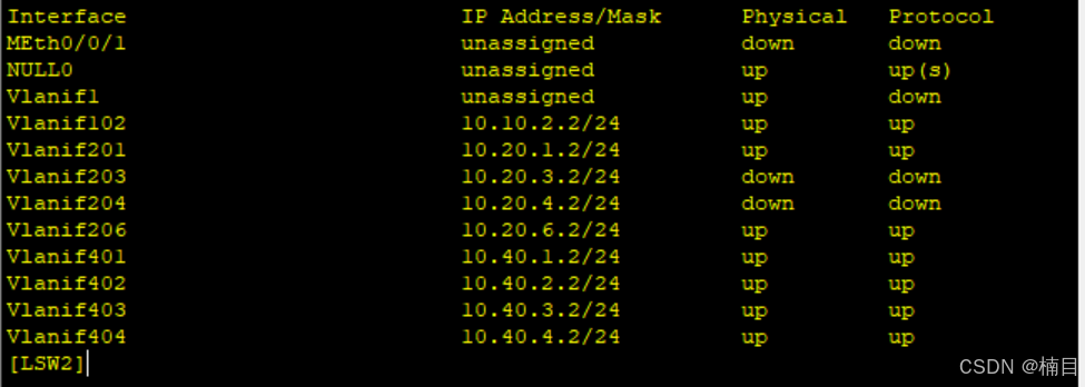 [LSW1]ip route-static vpn-instance VRF 0.0.0.0 0 10.40.2.200 preference 70