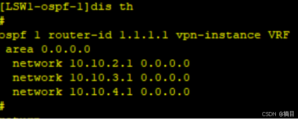 [LSW1]ospf 1 router-id 1.1.1.1 vpn-instance VRF