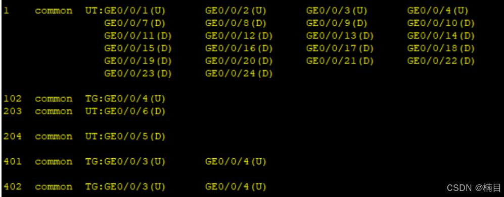 记得写进入交换机1和2的access链路