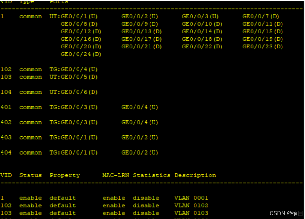 [LSW1-GigabitEthernet0/0/6]port default vlan 104