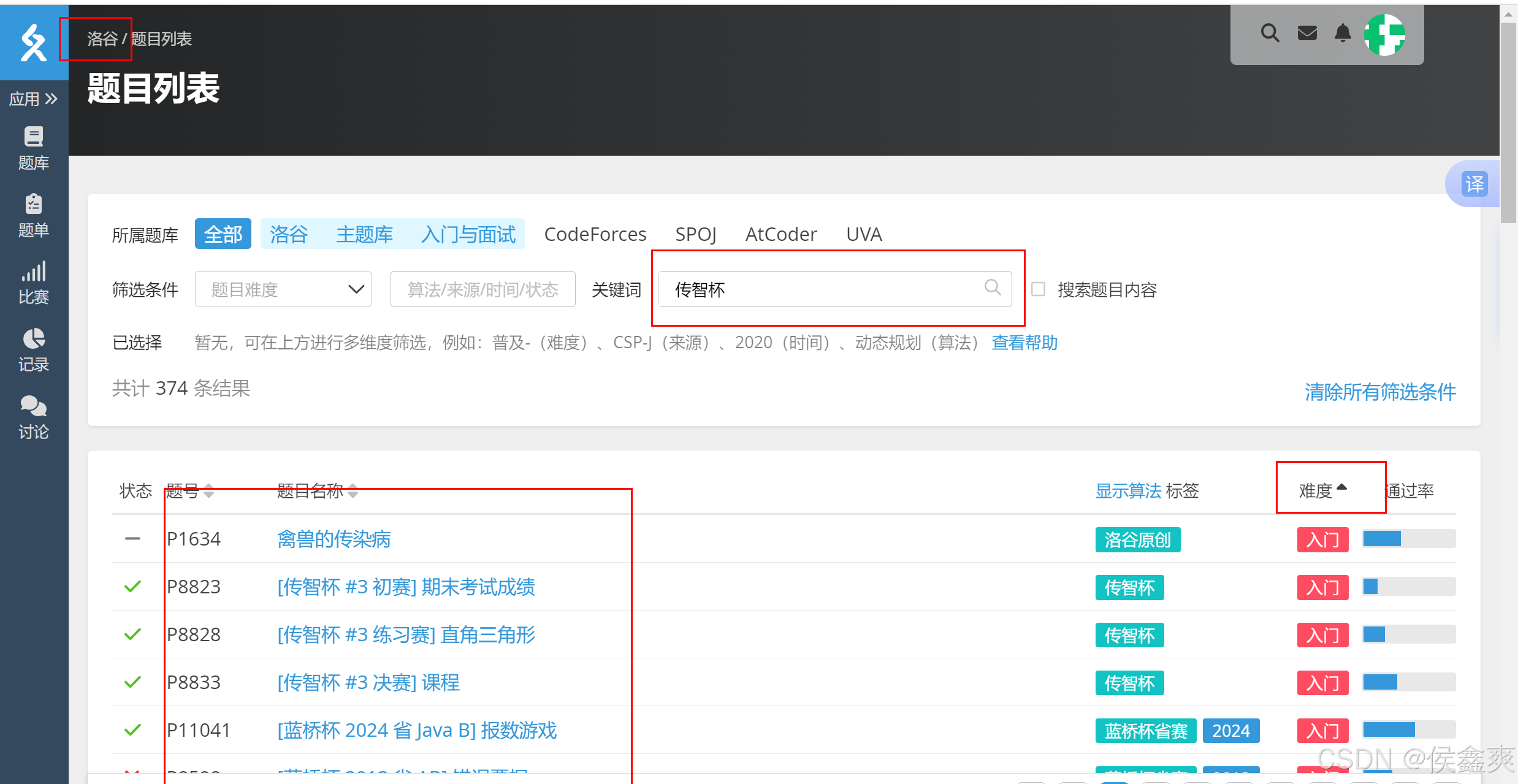 备考传智杯的题库:可在洛谷上面的题库中,搜索关键词传智杯,即可!