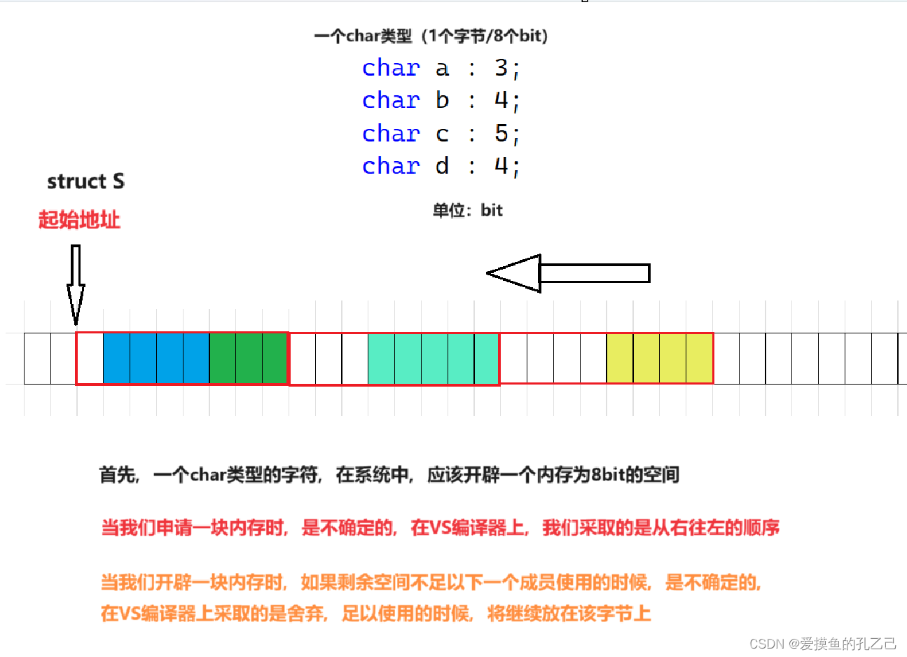 | 3 . 位段中的成员在内存中从左向右分配,还是反之,标准尚未定义 |