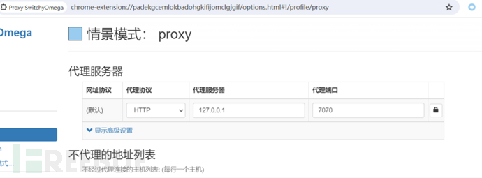 客户端浏览器代理转发给下游代理 代理端口为7070