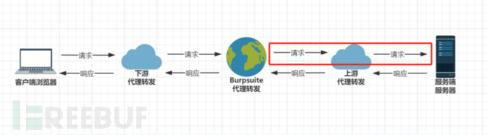 在客户端浏览器与Burpsuite之间、Burpsuite与服务端服务器之间的代理也分别有他们名词,分别为下游代理、上游代理。