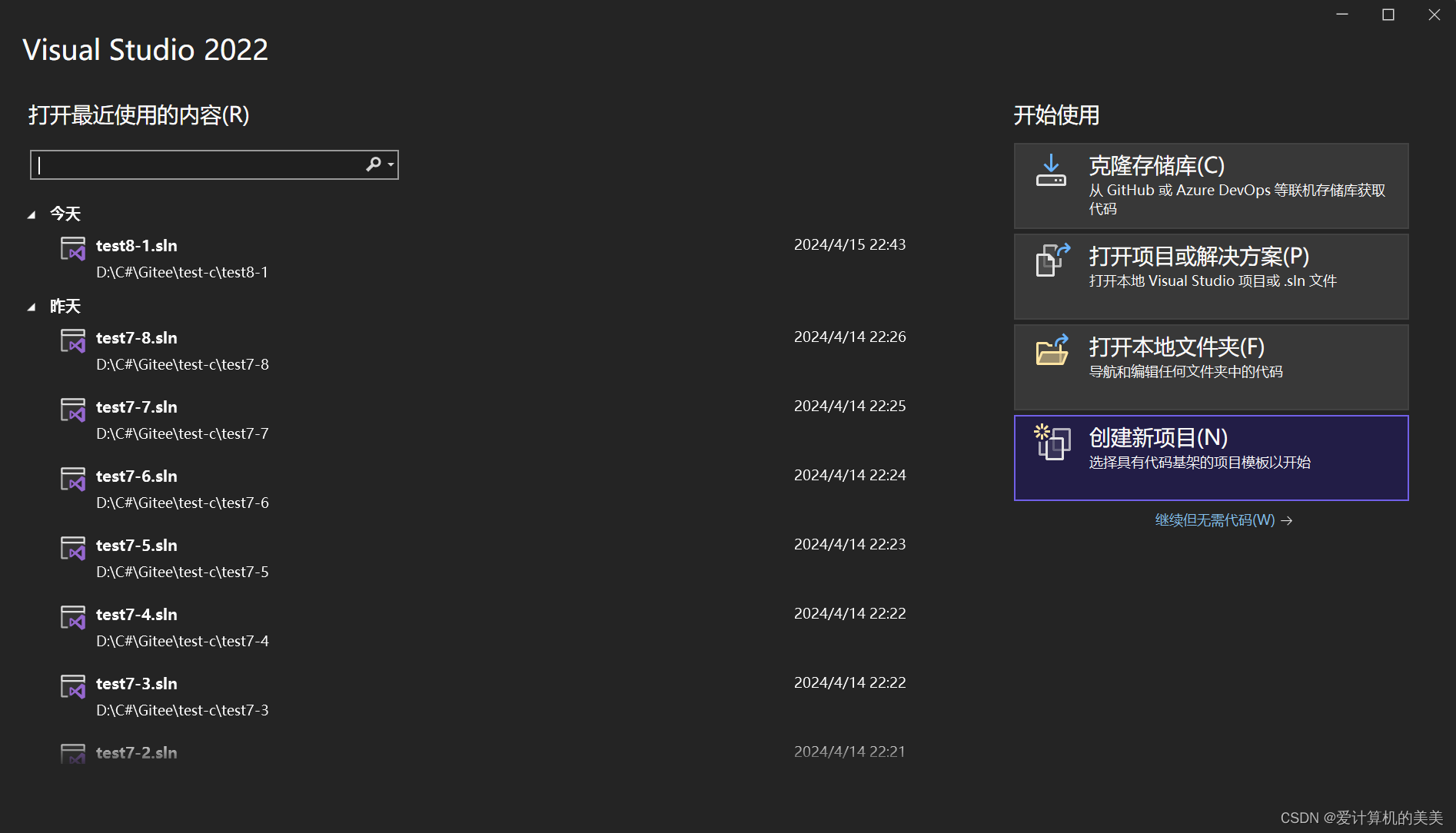 - 打开VS2022后,会出现如图界面,点击【创建新项目】;