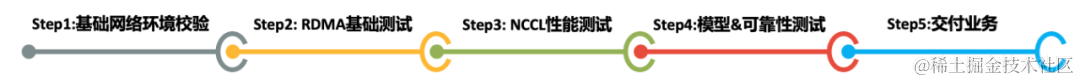 4)模型 & 可靠性测试:运行典型模型训练,判断业务模型性能是否达到预期;通过设计端侧故障模拟、网络内故障模拟以及交换机配置错误等三类故障来判断业务可用性是否达到预期。