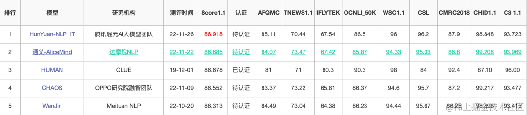 在最新的自然语言理解任务榜单 CLUE 上,腾讯首个低成本、可落地的 NLP 万亿大模型训练斩获总榜、分类榜和阅读理解榜三个榜首,其在训练速度以及训练精度上全面超越传统算力集群,甚至超过人类水平。而在金榜题名的背后,星脉高性能计算网络为腾讯万亿大模型构筑了高性能网络底座。