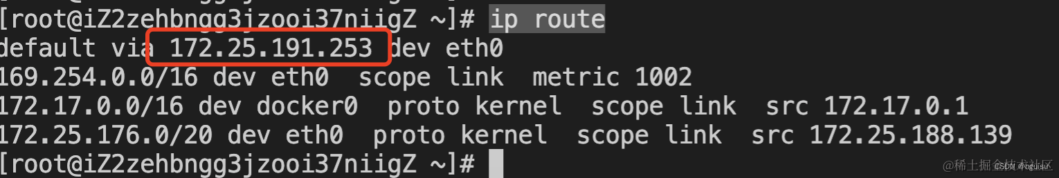 查看网关:查找标记为default或0.0.0.0的路由条目,它的网关地址即是你需要的host-gateway。
