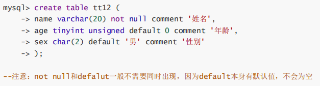 列描述:comment,没有实际含义,专门用来描述字段,会根据表创建语句保存,用来给程序员或DBA 来进行了解。