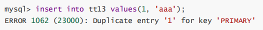 主键约束:主键对应的字段中不能重复,一旦重复,操作失败。