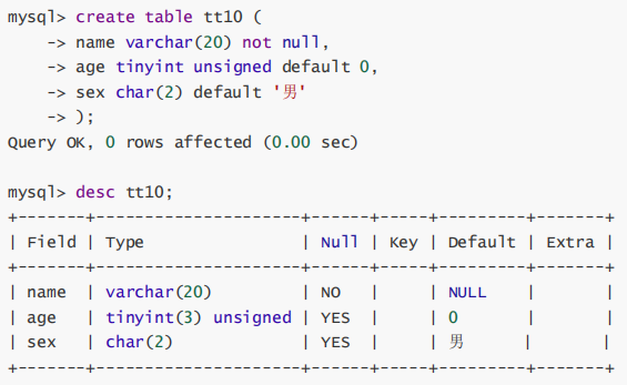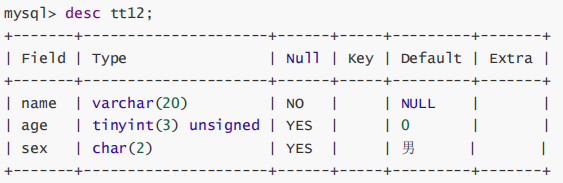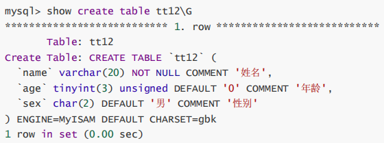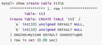 刚开始学习数据库时,很多人对数字类型后面的长度很迷茫。通过show看看tt3表的建表语句: