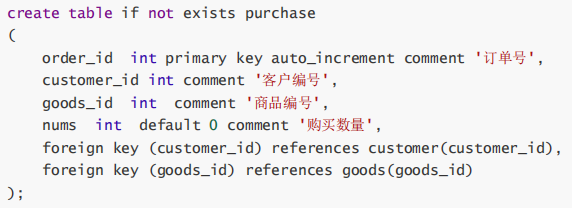c、购买purchase(购买订单号order_id,客户号customer_id,商品号goods_id,购买数量nums)