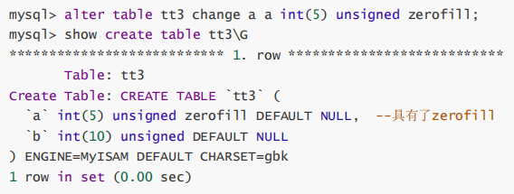 但是对列添加了zerofill属性后,显示的结果就有所不同了。修改tt3表的属性: