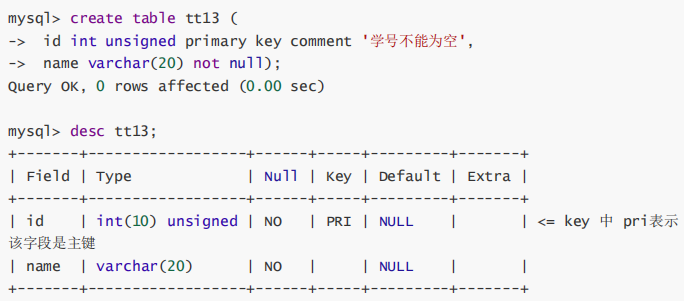 示例:创建表的时候直接在字段上指定主键