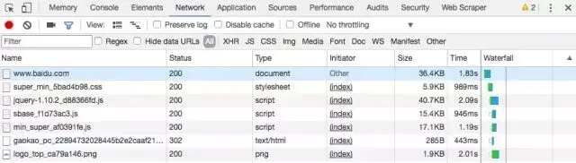 第六列 Time,即发起 Request 到获取到 Response 所用的总时间。