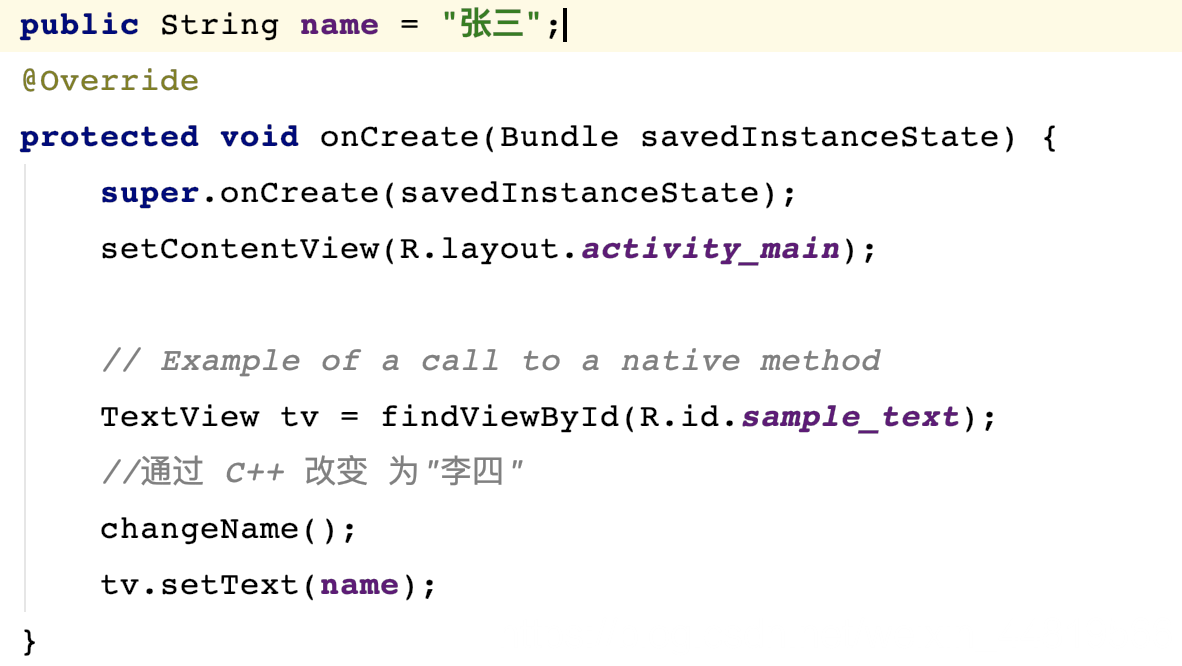 实现效果:java 属性值为"张三",通过调用 native 函数,修改为李四