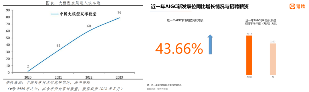 在大模型蓬勃发展的同时,企业对 AIGC 人才的需求也在 “指数级”增加。在猎聘发布的《AIGC 就业趋势大数据报告》显示,新一季度的 AIGC 人才需求是之前一个季度的 5.6 倍,招聘平均年薪超 40 万。乃至计算机 /AI 等相关专业都成了高考志愿的热点。