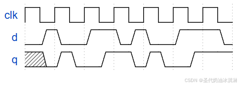 q=0;// 题意,D触发器在机器启动之前最初复位为零。