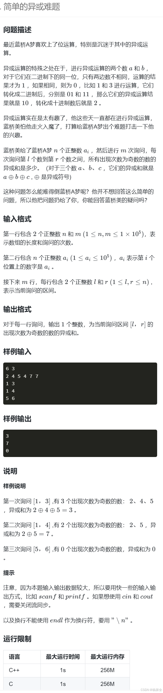 int a[N];//这题关键是奇数和偶数的差别,就再异或一次就行
