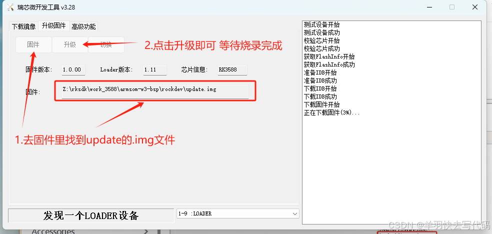 烧录镜像到eMMC需要使用到 RKDevTool 烧录工具和 RK驱动助手(DriverAssitant)