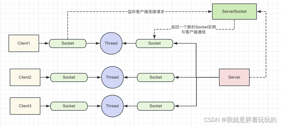 搞懂BIO与NIO 1. 每个连接对应一个线程,导致线程数量随着连接数增加而增加,可能导致资源消耗过大。2. 读取和写入操作是阻塞的,可能导致性能瓶颈,特别是在大量并发连接的情况下。3. 适用于连接数较少且通信量不大的场景,但在高并发情况下性能表现不佳。NIO是Java中用于高性能I/O操作的一种机制。它提供了Channel和Buffer的抽象,以及Selector的多路复用能力,使得单个线程可以有效地管理多个通道的I/O操作。NIO相对于传统的I/O(即BIO)具有更高的并发性能和可扩展性,适用于需要处理大量连接的网络应用。