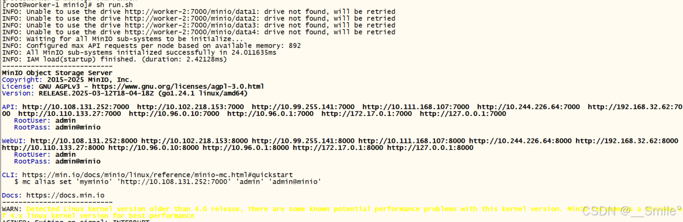 http://worker-{3...4}/minio/data{1...4} > /root/minio/minio.log 2>&1 &