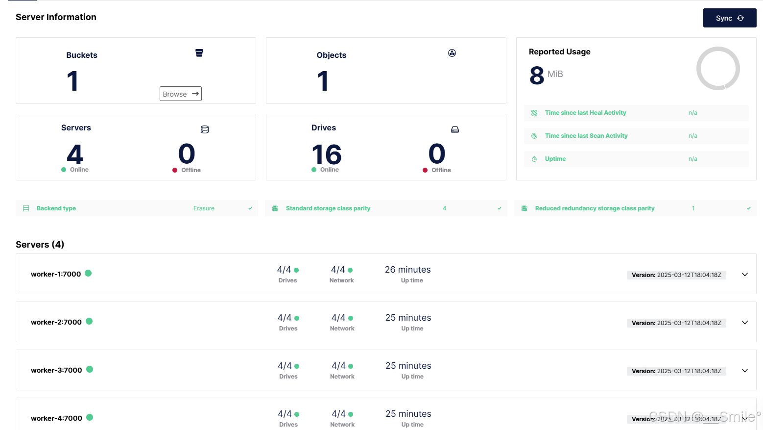 http://worker-{1...2}/minio/data{1...4} > /root/minio/minio.log 2>&1 &