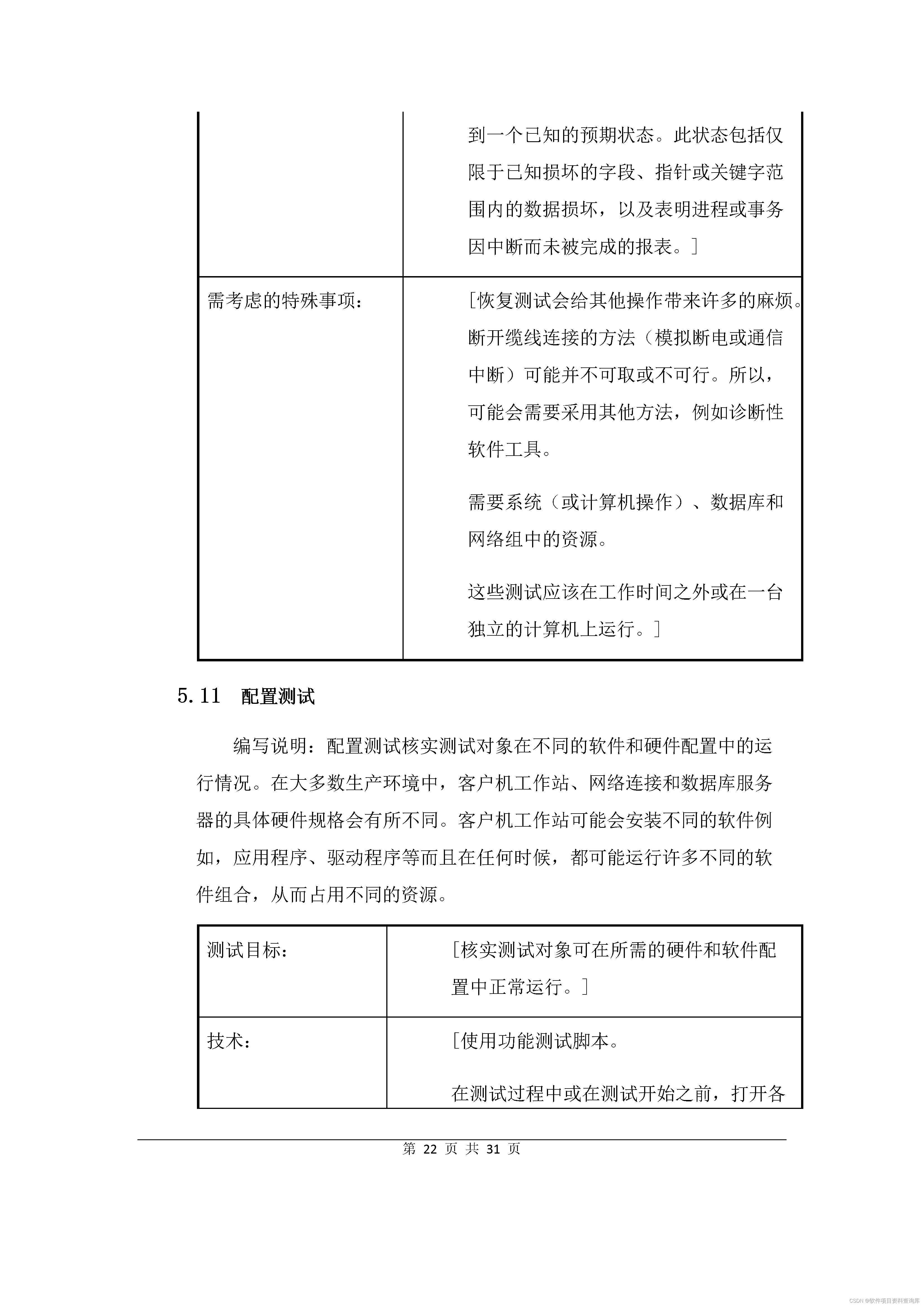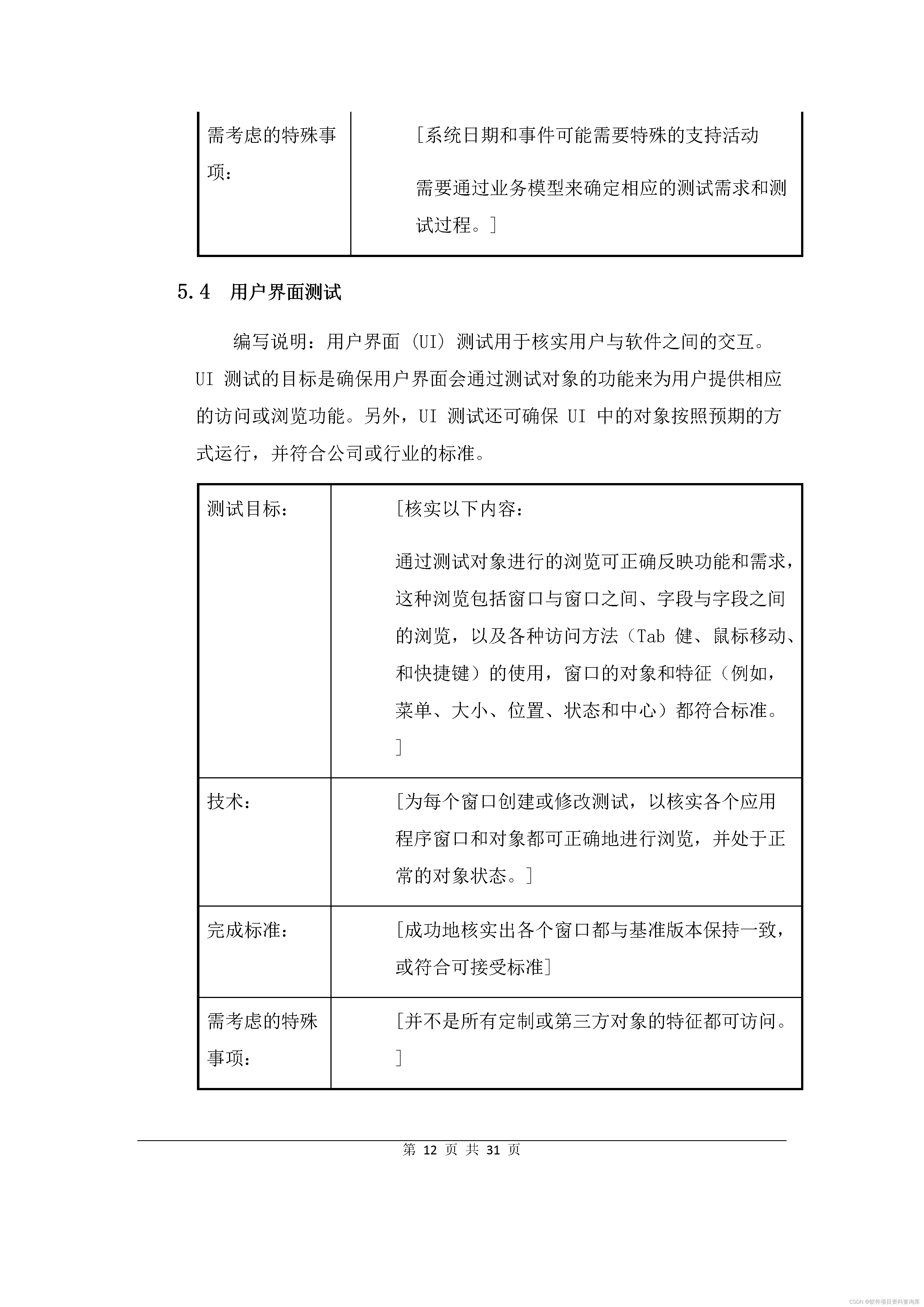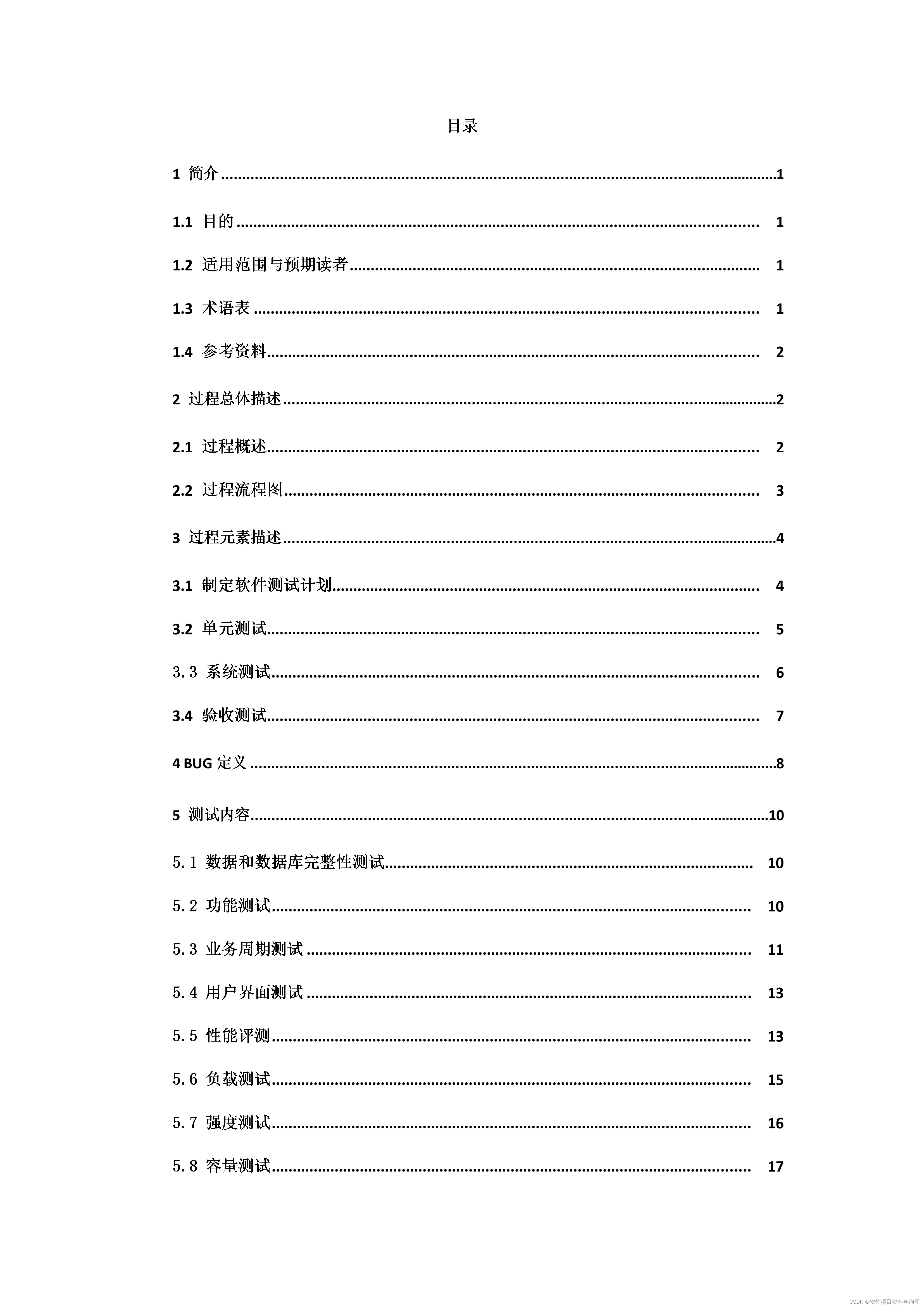 本文旨在提供软件测试的规范化流程,强调发现和纠正产品问题,以实现功能完整、性能达标、健壮适应性。详列了从需求到验收的全过程文档清单,强调质量管理与项目执行的关键环节。