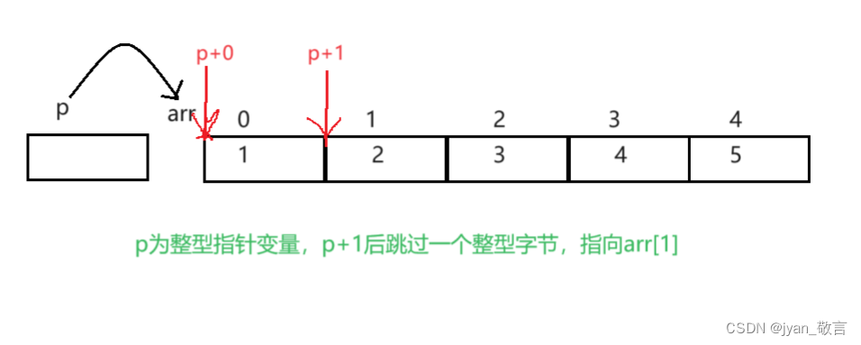 p+1中存的是arr[1] 的地址, *(p+1)后得到arr[1] =2(数组第二个元素)