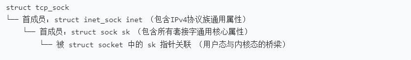 // 4. TCP协议专用:struct tcp_sock(扩展TCP特有属性)
