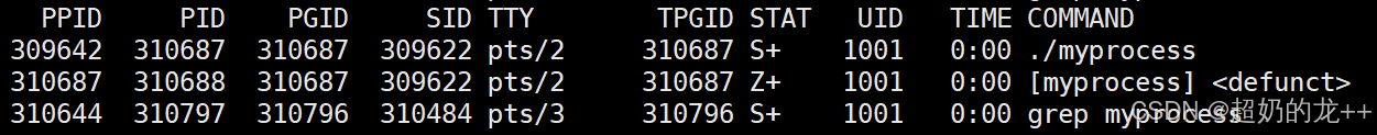 task_struct)仍然保留在系统中,直到其父进程调用wait()或waitpid()等系统调用获取其退出状态信息。处于僵尸状态的进程已经不再执行代码,但它的存在是为了让父进程能够获取其退出状态。 - 示例:如果一个父进程创建了一个子进程,子进程完成任务后退出,但父进程没有及时调用