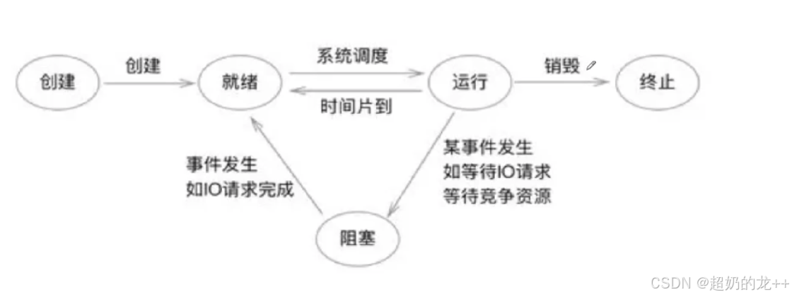 - 运行状态的进程在时间片用完或者被更高优先级的进程抢占时,会转换到就绪状态。