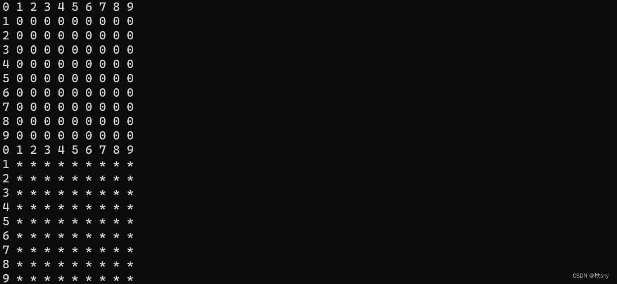 当玩家判断完要开始扫雷游戏后,我们就需要制作表格来放置我们的数据,由于是表格,我们率先就想到使用二维数组来放置数据(我们需要创建两个二维数组,一个用来判断是否是雷,另一个用来表示输出给玩家看的表格):