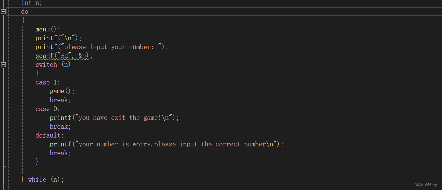 我们应先让玩家判断游戏的开始或结束,并且当玩家玩玩一轮后判断是否需要重新下一把游戏,那么就需要使用循环语句: