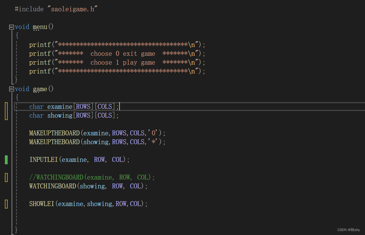 可能会有人问,你写了这么多的代码所使用的头文件都在哪里啊?我们的思路是将所有声明和头文件放入一个自定义的头文件中(saoleigame.h中)