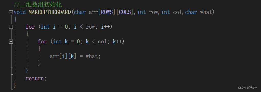 注释:为什么是11,而不是9呢,原因是之后我们会判断坐标格周围的雷的数量,如果坐标在9*9表格的边界时,就会发生越界。