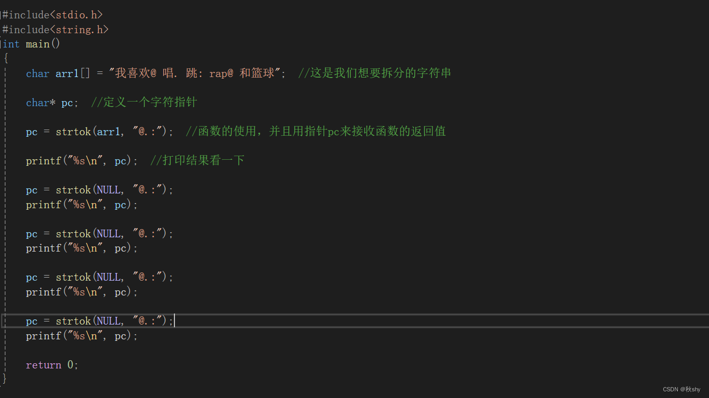 本质:这个函数会在我们想要拆分的地方把这些字符修改成 ' \0 ' (比如把@ --> ' \0 ' 来完拆分)
